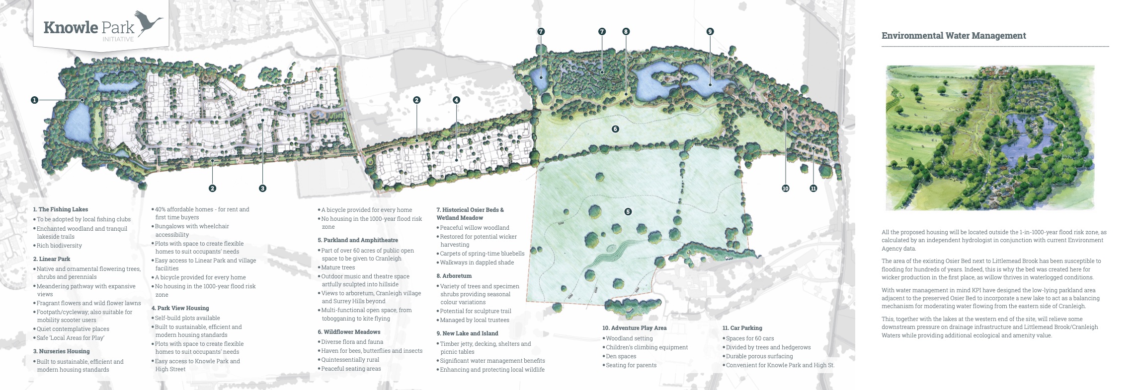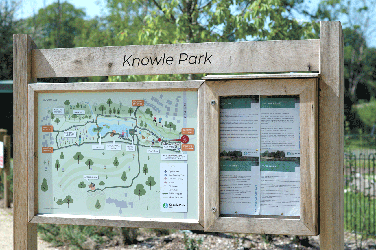 Planning permission was approved for both the housing and the parkland, with the landowner and architects noting the impact of the design work on the project’s success. Following approval, the focus shifted to establishing the Knowle Park Trust, the body set up to oversee the creation of the community park. Completed a few years later, the park is now regarded as an exemplar of its kind, and the identity I created is still in use today.